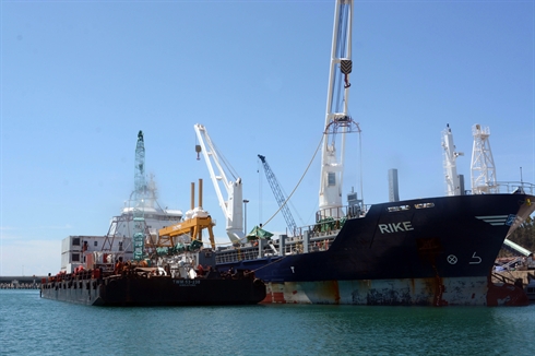 | Réception des câbles sous-marins pour le district de Ly Son, le 23 août au port de Dung Quât. |