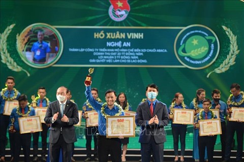 | Hô Xuân Vinh (centre) s’est vu décerner le prix de science et de technologie destiné aux jeunes scientifiques de l’Union centrale de la jeunesse. |