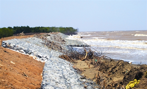 | Relèvementde la digue sur le littoral de Vinh Châu, province de Soc Trang (delta du Mékong). |
