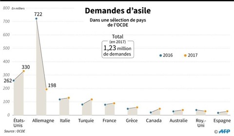 L'Autriche a compté au total 200.665 demandes d'asile entre 2013 et 2017, représentant 2,3% de la population de ce petit pays de 8,7 millions d'habitants. Après un pic à 88.160 en 2015, le nombre de demandes annuelles s'est établi à 24.715 en 2017.