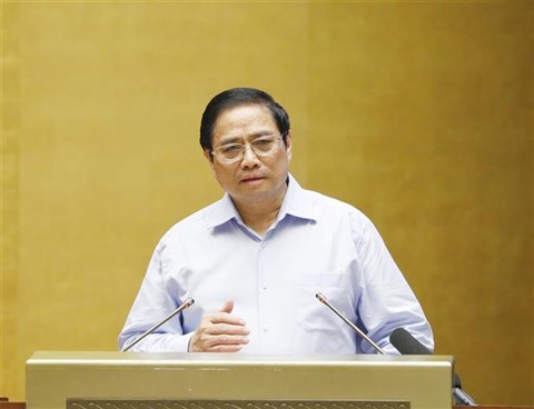 | Le Premier ministre Pham Minh Chinh lors de la conférence tenue le 21 juillet à Hanoï. |