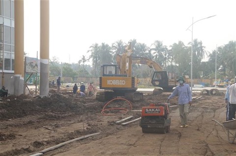 | Travaux de construction d'une route dans la province de Tiên Giang. |
