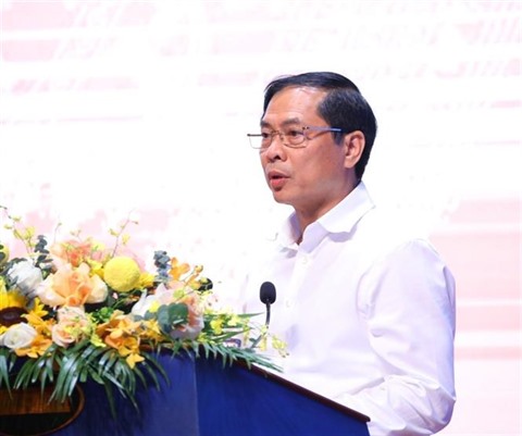 | Le ministre des Affaires étrangères, Bùi Thanh Son, lors de la conférence, le 29 juin à Hanoï. |