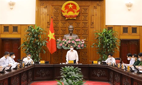 | Le Premier ministre Pham Minh Chinh (debout) lors d'une séance de travail avec le ministère de l'Éducation et de la Formation, le 6 mai à Hanoï. |