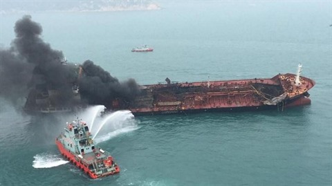>>Un pétrolier en flammes dans les eaux hongkongaises, un mort