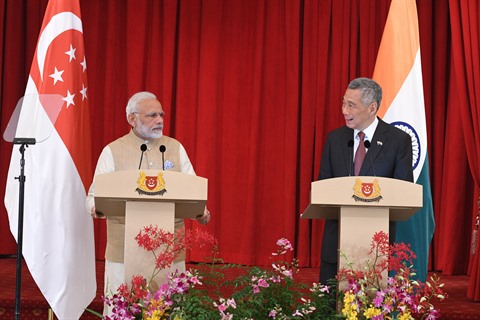 Narendra Modi est arrivé à Singapour le 31 mai, entamant une visite de trois jours dans ce pays, dernière étape d'une tournée en Asie du Sud-Est comprenant également l'Indonésie et la Malaisie. À noter que c'est la deuxième fois cette année que le chef du gouvernement indien se déplace à Singapour, ce qui montre bien l'importance de ce pays la doctrine de politique étrangère indienne répondant au nom d'"Agir vers l'Est" ("Act East" en anglais).