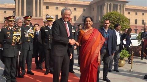 | La ministre indienne de la Défense, Nirmala Sitharaman, et son homologue singapourien Ng Eng Hen. |