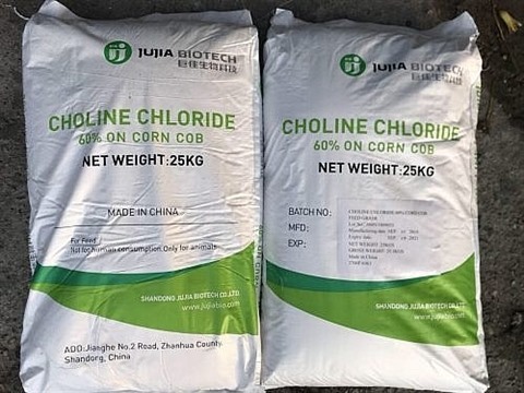 | Le chlorure de choline, additif courant dans l'alimentation animale. |