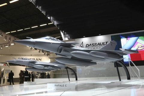 | Deux modèles de Rafale Dassault présentés le 13 juin 2016 au salon Eurosatory à Villepinte (près de Paris). |