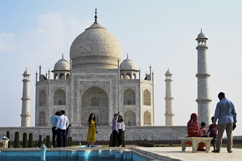 | Des touristes au Taj Mahal à Arga, en Inde, le 16 juin. |