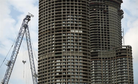 | Un immeuble en construction à Bombay, le 28 février 2015. |