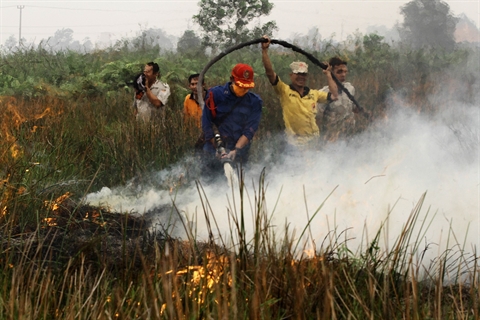 Ces incendies qui ont débuté il y a trois mois dans les provinces indonésiennes de Sumatra et Kalimantan -où la culture de palmiers à huile se développe- provoquent un brouillard nocif qui s'étend aux pays voisins et entraîne des infections respiratoires pour des dizaines de milliers de personnes, des fermetures temporaires d'écoles et des perturbations du trafic aérien.