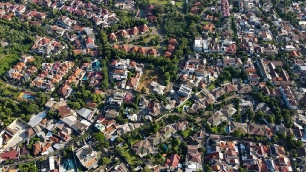 | Photo aérienne montrant des zones résidentielles proches du centre-ville de Jakarta. |