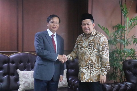 | L’ambassadeur du Vietnam en Indénésie, Hoàng Anh Tuân (gauche), et le vice-président du Conseil représentatif du peuple d’Indonésie, Fahri Hamzah. |