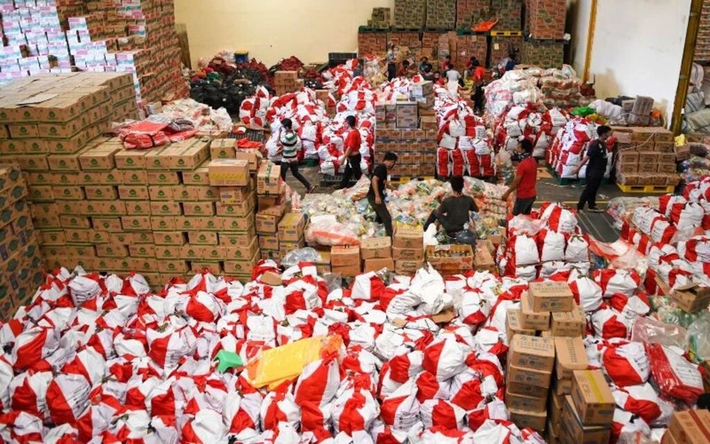 | Le gouvernement indonésien fournit des alimentaires de base aux pauvres. |
