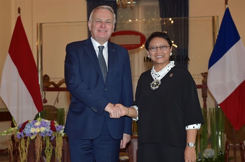 | Le ministre français des Affaires étrangères et du Développement international, Jean-Marc a recontré son homologue indonésien, Mme Retno Marsudi mardi 28 février à Jakarta. |