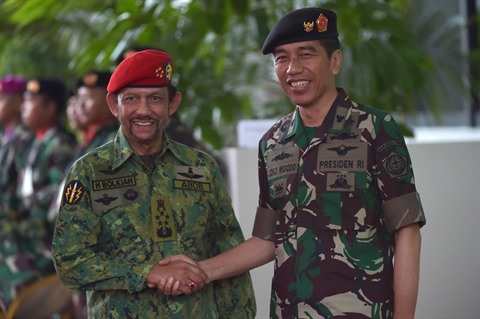 | Le président indonésien, Joko Widodo (droite), et le sultan du Brunei, Haji Hassanal Bolkiah, 3 mai à Jakarta. |