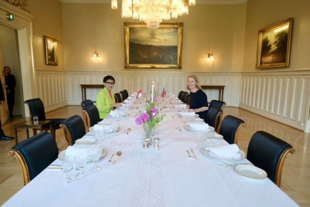| La ministre indonésienne des Affaires étrangères, Retno Marsudi (gauche), et son homologue norvégienne Anniken Huitfeldt. |