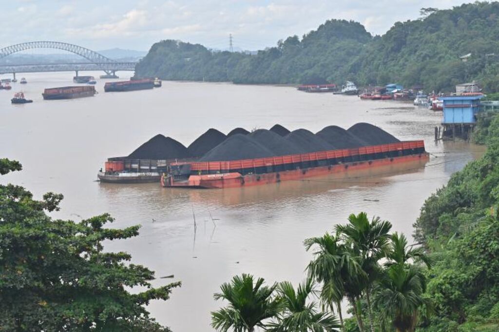 | Des barges transportant du charbon à Samarinda, le 16 août 2022 en Indonésie. |