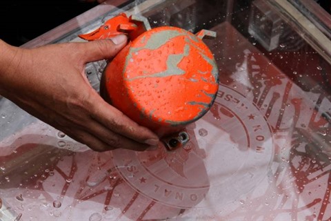 | La seconde boite noire récupérée, le 14 janvier, après le crash du vol de Lion Air au large de l'Indonésie en octobre 2018. |