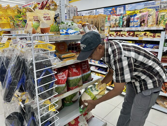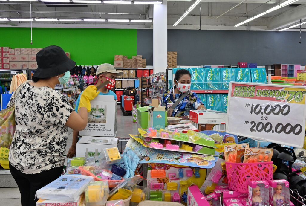 | Des gens font leurs courses dans un supermarché à Jakarta, en Indonésie. |