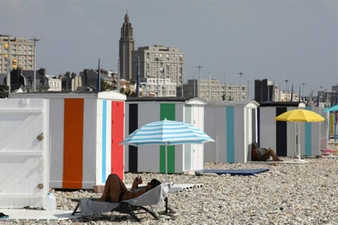 | Une femme à la plage au Havre le 25 juillet. |