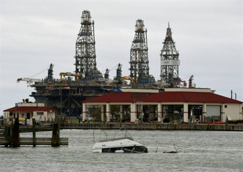 | Une plateforme pétrolière à Port Aransas, au Texas, frappé par l'ouragan Harvey, le 27 août. |