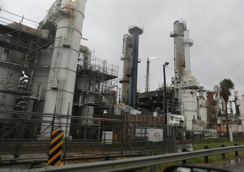 | Une raffinerie avant le passage de l'ouragan Harvey à Corpus Christi, au Texas, le 25 août. |