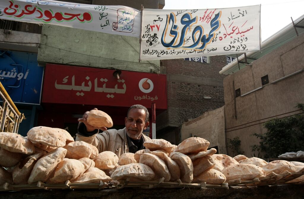 | Le pain pita mis en vente dans une rue au Caire, en Égypte. |
