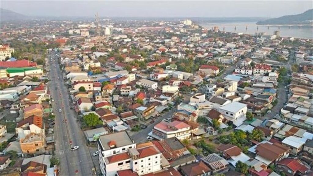 | La ville de Pakse, province de Champasak, un grand centre économique du Laos. |