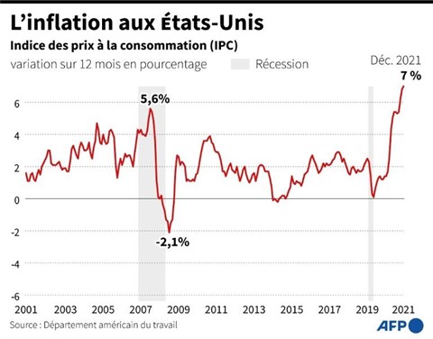 Aux États-Unis, l'inflation a atteint 7% en 2021, un rythme que le pays n'avait pas connu depuis près de 40 ans.
