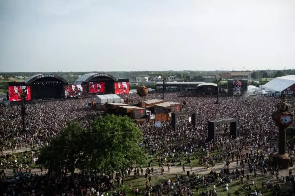 | Le festival Hellfest le 17 juin 2022, à Clisson, en Loire-Atlantique. |