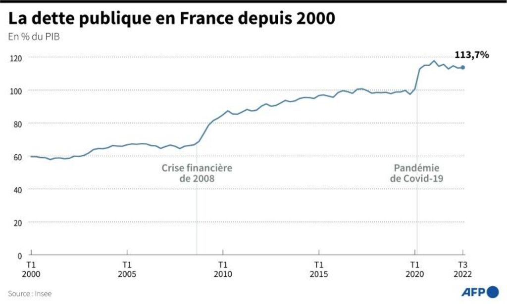 La charge des emprunts publics s'est accrue de 13 milliards d'euros en un an, à plus de 51 milliards en 2022, alors que les taux des obligations françaises à 10 ans ont brutalement rebondi autour de 3% après des années de taux très bas voire négatifs. Plus qu'un chiffre absolu, c'est surtout l'évolution du ratio d'endettement par rapport au PIB qui est particulièrement scruté sur les marchés.
