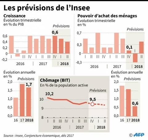 En revanche, le pouvoir d'achat des ménages devrait pâtir début 2018 du regain d'inflation et "des effets du calendrier fiscal", selon l'Insee.