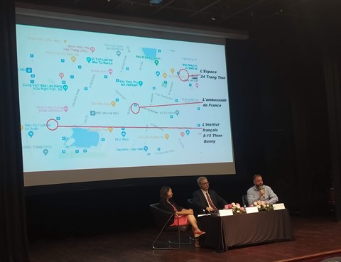 | Conférence de presse sur la relocalisation de l’Institut français de Hanoï, le 8 avril. |