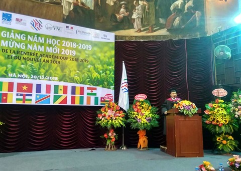 | Le recteur de l’IFI, Ngô Tu Lâp, prend la parole lors de la cérémonie d’ouverture de la rentrée académique 2018-2019 de l’Institut, le 28 décembre à Hanoï. |