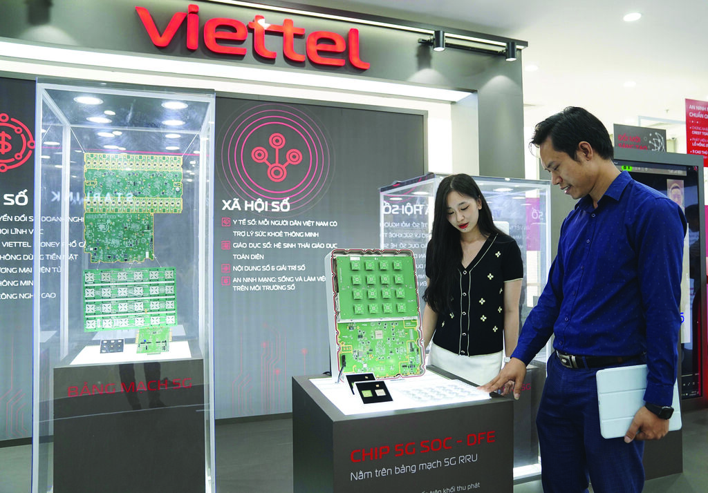 | Des puces 5G et des assistants virtuels d’IA présentés par le Groupe de l’industrie et des télécommunications de l’armée au Salon international de l’innovation du Vietnam 2023, le 28 octobre dernier. |