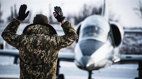 | Des militaires ukrainiens s'entraînent près de TCherniguiv, dans le Nord de l'Ukraine, le 12 février 2022. |