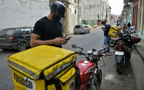 On les croise partout dans La Havane : reconnaissables à leurs gros sacs isothermes jaunes à l'arrière de leurs scooters, les livreurs de Mandao se sont multipliés depuis un an - et encore plus avec la pandémie de coronavirus. Avant, la livraison de repas était inexistante.