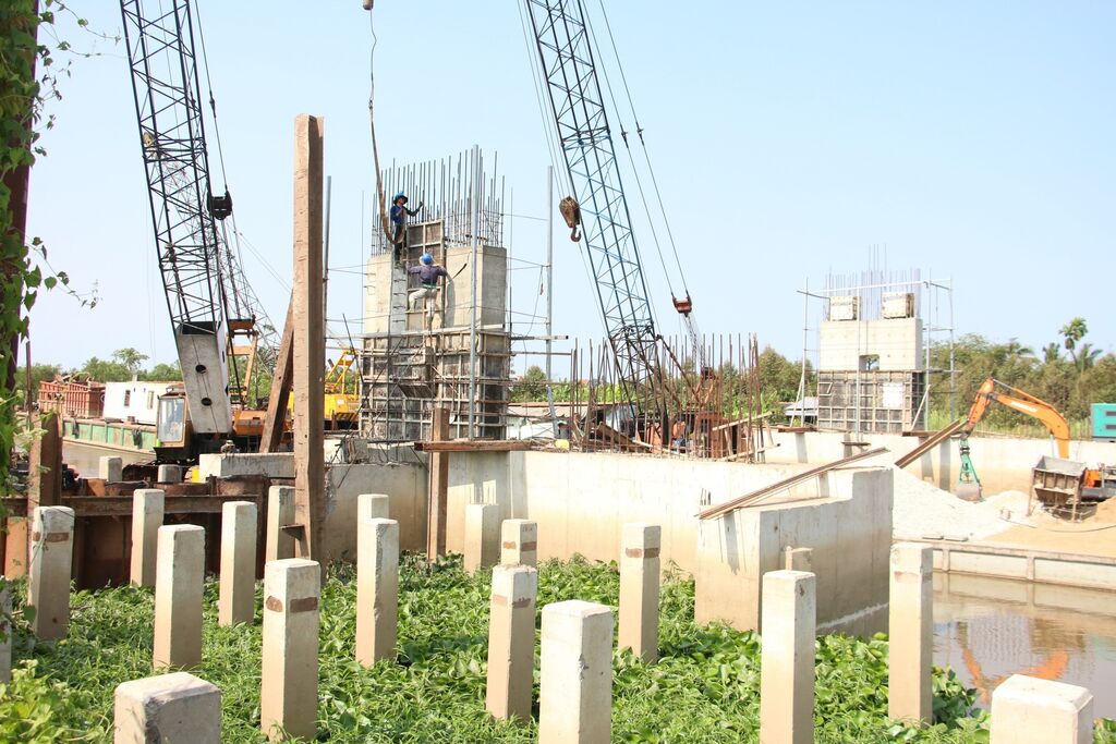 | Un ouvrage destiné à lutter contre la salinité en construction dans la province de Bên Tre. |