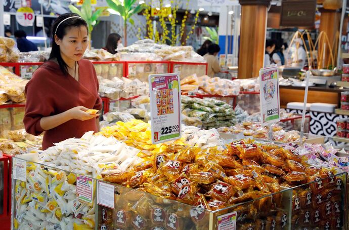 | Des consommateurs font leurs courses au supermarché Go An Nhon. |