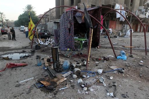 | Les lieux d'une attaque à la voiture-piégée à Bagdad, le 2 n |