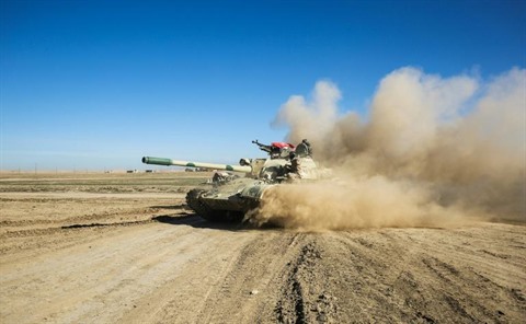 | Des blindés des forces irakiennes se dirigent vers le village de Sheikh Younis, au sud de Mossoul, le 19 février. |