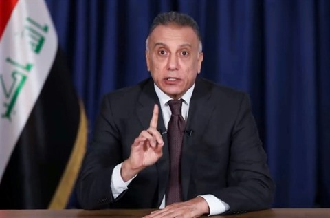 | Capture d'écran d'un discours télévisé du nouveau Premier ministre irakien Moustafa al-Kazimi, alors tout juste désigné, le 9 avril à Bagdad. |