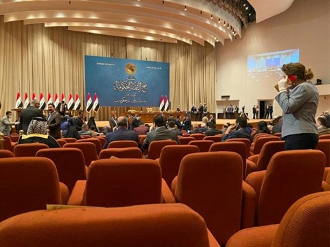 | Les parlementaires irakiens se réunissent pour désigner un nouveau gouvernement mené par Moustafa al-Kazimi, le 6 mai à Bagdad. |