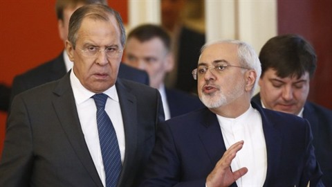 | Le chef de la diplomatie russe (gauche) avec son homologue iranien Mohammad Zarif au cours d'une rencontre à Moscou, le 28 avril. |