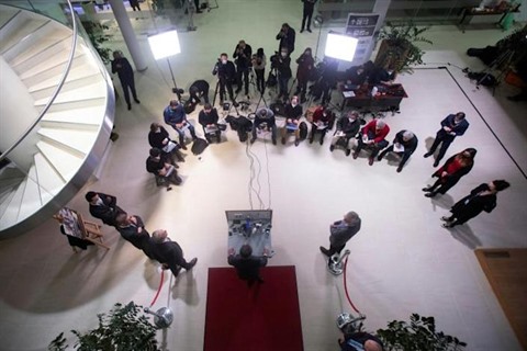 | Point presse du directeur général de l'AIEA, Rafael Mariano Grossi, après son arrivée à l'aéroport international de Vienne en Autriche, le 5 mars. |