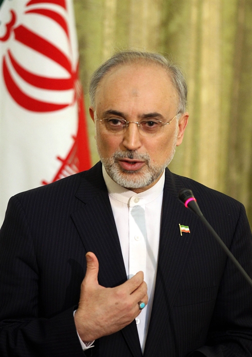 | Le chef de la diplomatie iranienne Ali Akbar Salehi, lors d'une conférence de presse, le 21 février à Téhéran. |