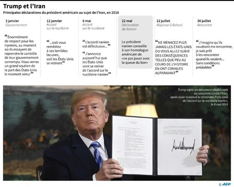 M. Trump critique fortement cet accord alors que les Iraniens le défendent bec et ongles. "Si vous êtes un ennemi et que vous poignardez quelqu'un avec un couteau, et qu'ensuite vous dites que vous voulez des négociations, la première chose à faire c'est d'enlever le couteau", a dit M. Rohani.
