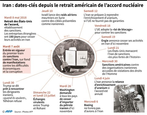 Conclu à Vienne par l'Iran et cinq grandes puissances, l'accord de 2015 a été dénoncé unilatéralement en mai par l'administration américaine du président américain Donald Trump, qui a depuis rétabli des sanctions contre Téhéran.